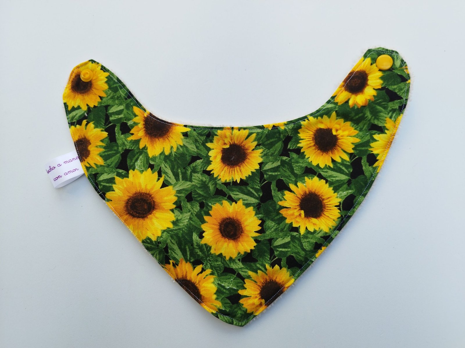 Está cosido con tela de algodón y la parte que está en contacto con la piel del bebé es de tela de rizo suave, especial para bebés.